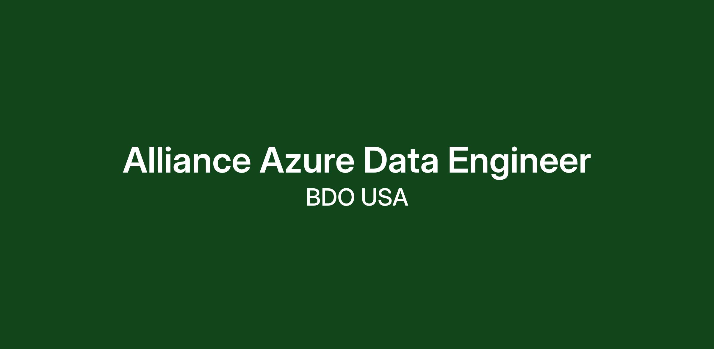 The BDO Alliance Azure Data Engineer is responsible for the technology and data environment used to support the BDO Alliance Team and all 400+ Alliance Firms. Being at the leading edge of up-to-date Azure infrastructure knowledge, the Azure Data Engineer is a key member of the core BDO Alliance IT Digital Assets Team. The individual in the role will be working with our customers and other stakeholders to ensure exceptional oversight of projects and operations. A successful candidate will thrive in a dynamic environment at the direction of the Alliance Director in-charge of the BDO Alliance Digital Assets team.