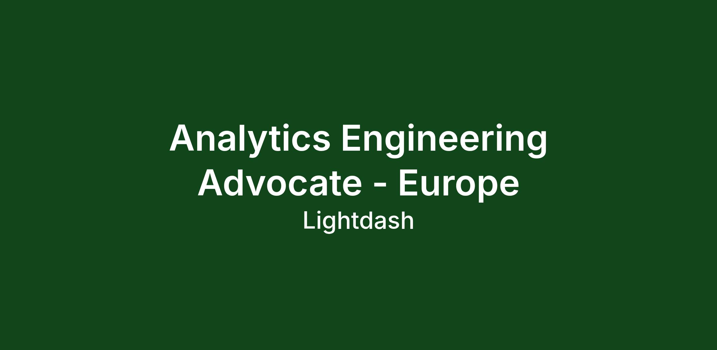 At Lightdash, we’re obsessed with the success of our users. Our fast and technical analytics support is one of our superpowers today. It covers everything from building dashboards and writing SQL to analytics engineering best practice. If you have a passion for helping teams win with data, we’re looking for an Analytics Engineering Advocate to join the Lightdash team.