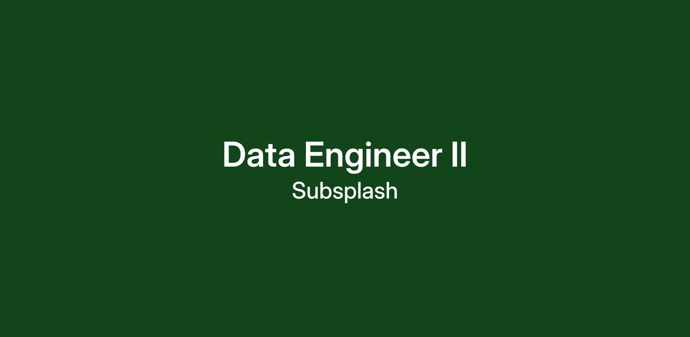 As a Data Engineer, you will be responsible for all things related to the collection, extraction, transformation, and correlation of business data across the Subsplash platform. You will report to the Site Reliability Engineering Manager. You will be an expert on our production data sources, and how to administer and tune data systems to optimize for performance. You will also work regularly with our data warehousing/data lake environments to help provide our business analysis and intelligence team with data marts. Data collection, extraction, and transformation is often achieved through Python code development and maintenance. In a remote-first, distributed team environment, you will work well with other team members to deliver working data engineering solutions early and often.