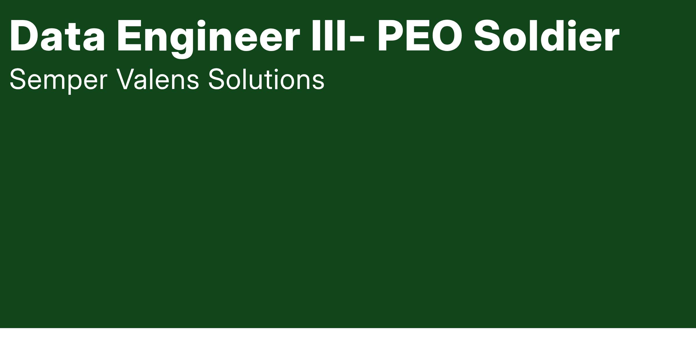 Semper Valens Solutions is seeking an experienced Data Engineer to support our organization in the Ft. Belvoir, VA area.
