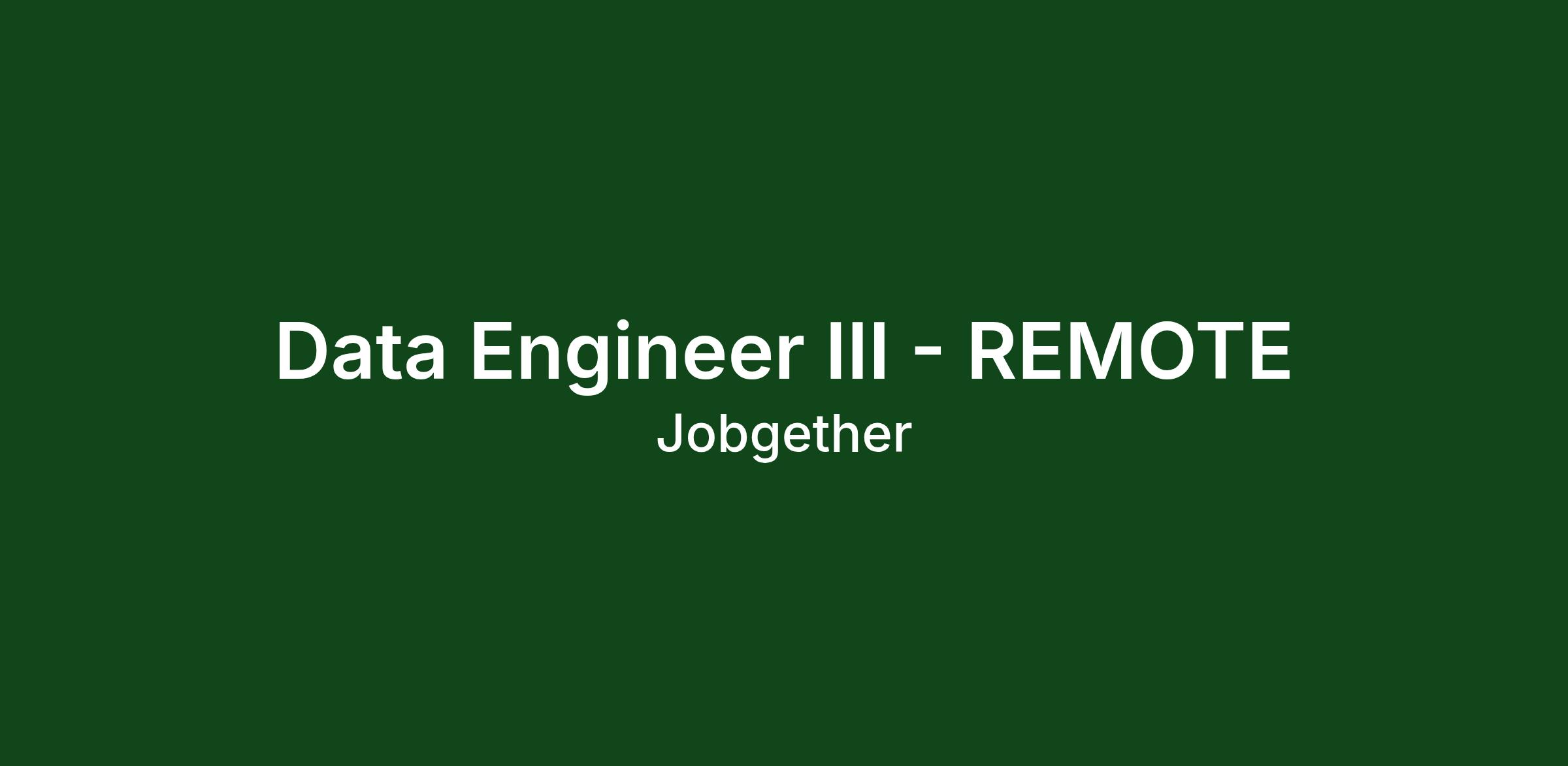 Data Engineer III - REMOTE