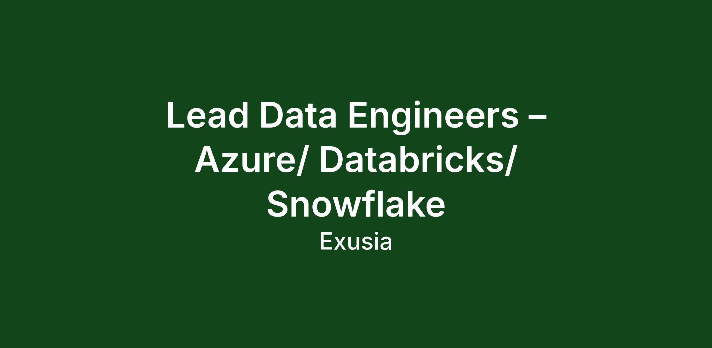 Lead Data Engineers – Azure/ Databricks/ Snowflake