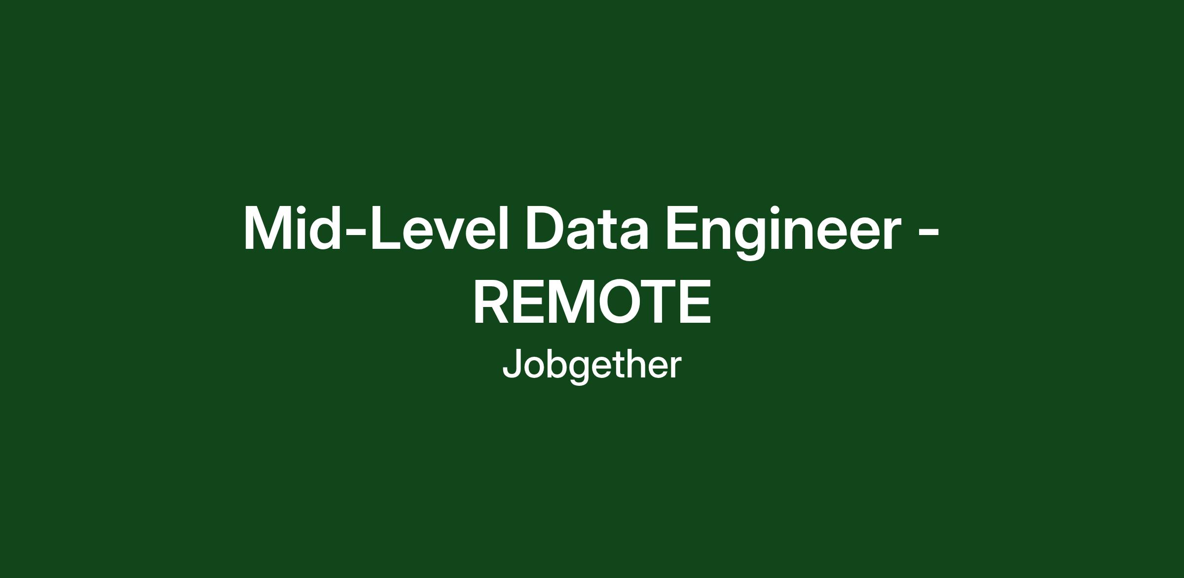 Mid-Level Data Engineer - REMOTE