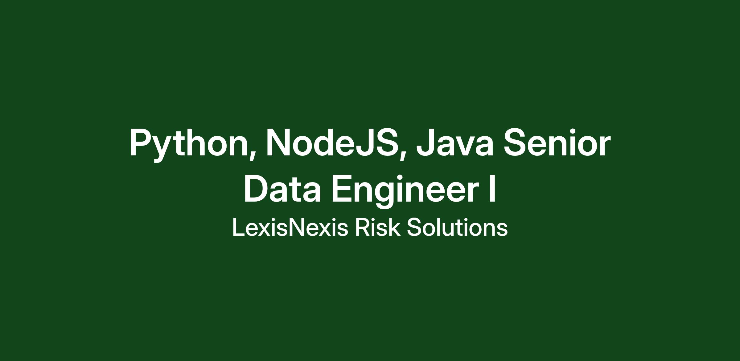 Are you looking for a Senior Data Engineer (Python, NodeJS, Java) role within our Mission Driven organization?