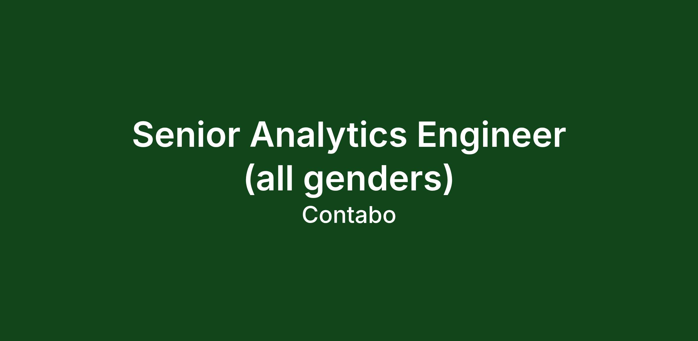 At Contabo, data is more than just numbers – it’s the foundation of our most important decisions. As our new Senior Analytics Engineer, you will play a key role in how we collect, structure, and transform data into valuable insights.