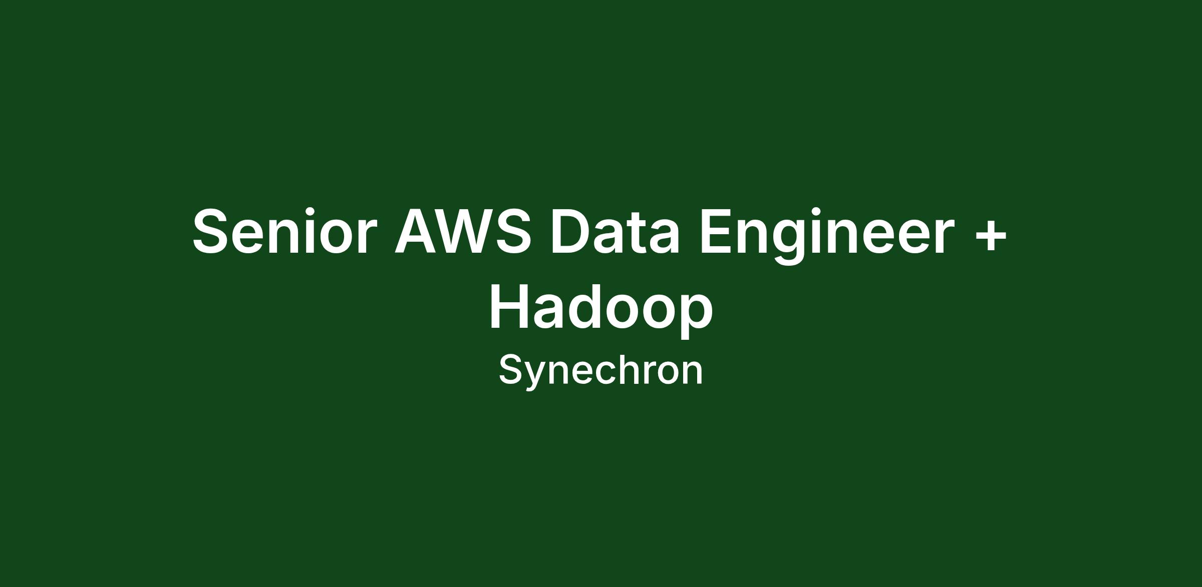 Job Description: Senior AWS Data Engineer