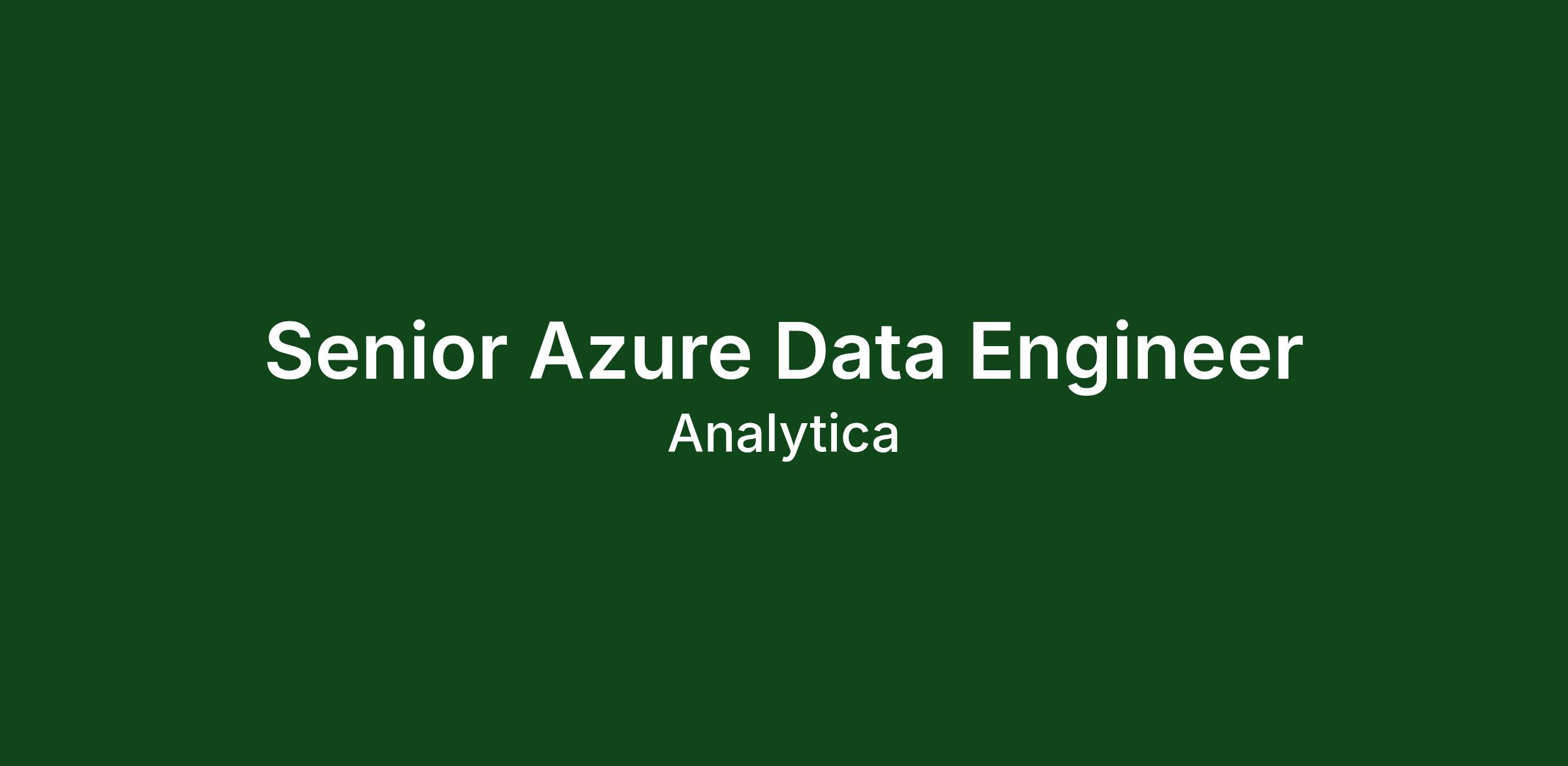 Analytica is seeking a Senior Data Engineer (Azure) to support one or more dynamic, long-term federal government enterprise data programs. The role will lead the architecture and engineering of Azure cloud big data solutions as part of enterprise data modernization. The successful candidate will join a high-impact team driving the evolution of cloud-native analytics, regulatory science, and mission-critical data systems.