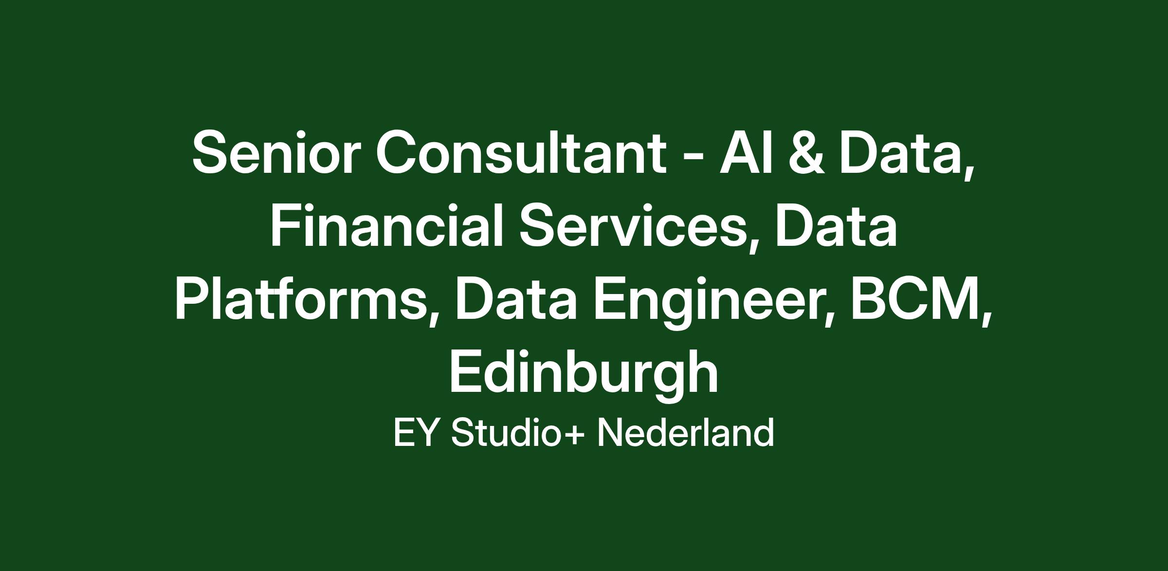 Senior Consultant, AI & Data, Financial Services, Data Engineer, Edinburgh