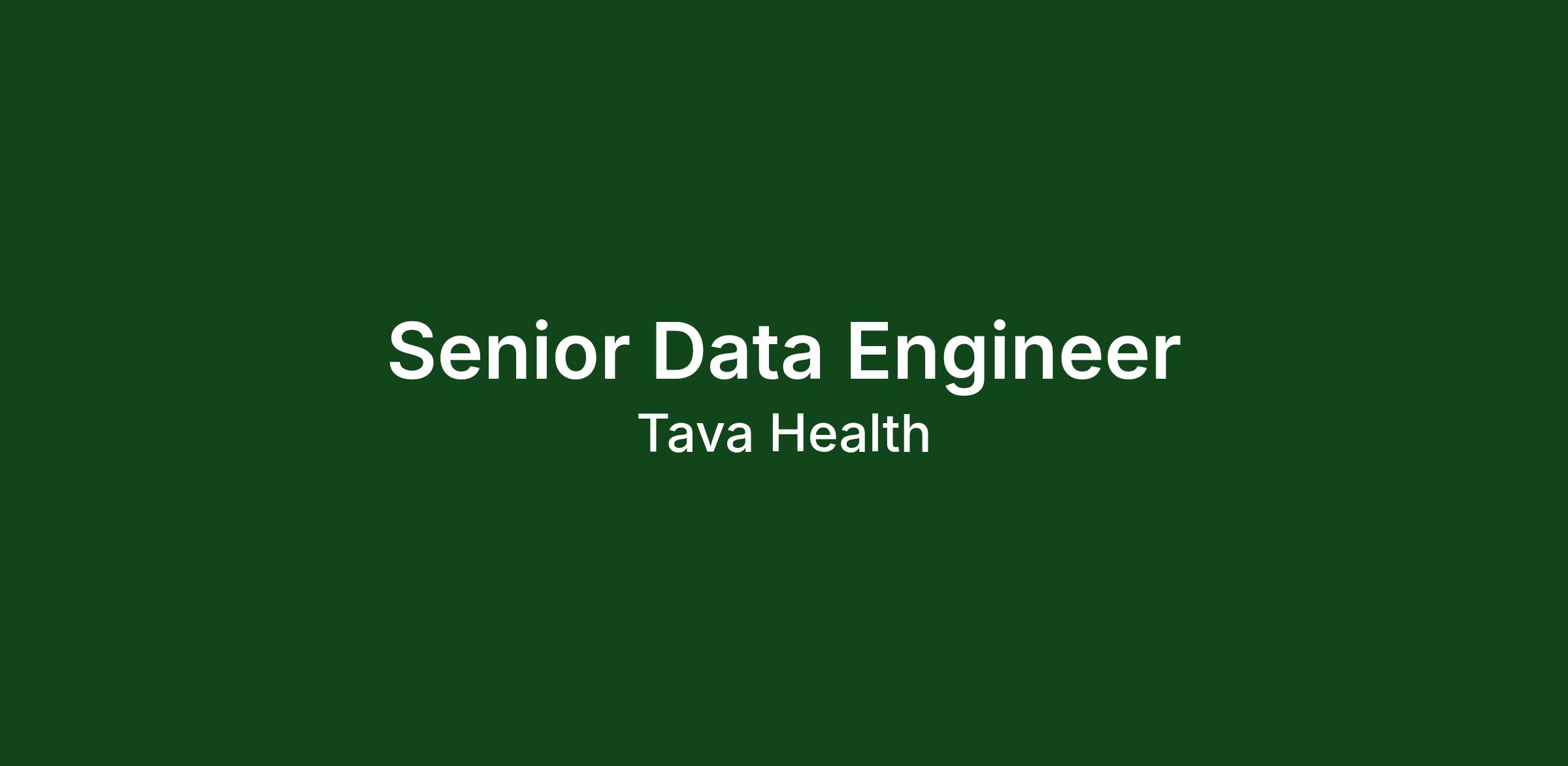 Tava Health is expanding its data engineering team and is hiring a Senior Data Engineer. This is a hands-on role, responsible for building and owning the company’s data infrastructure from the ground up.