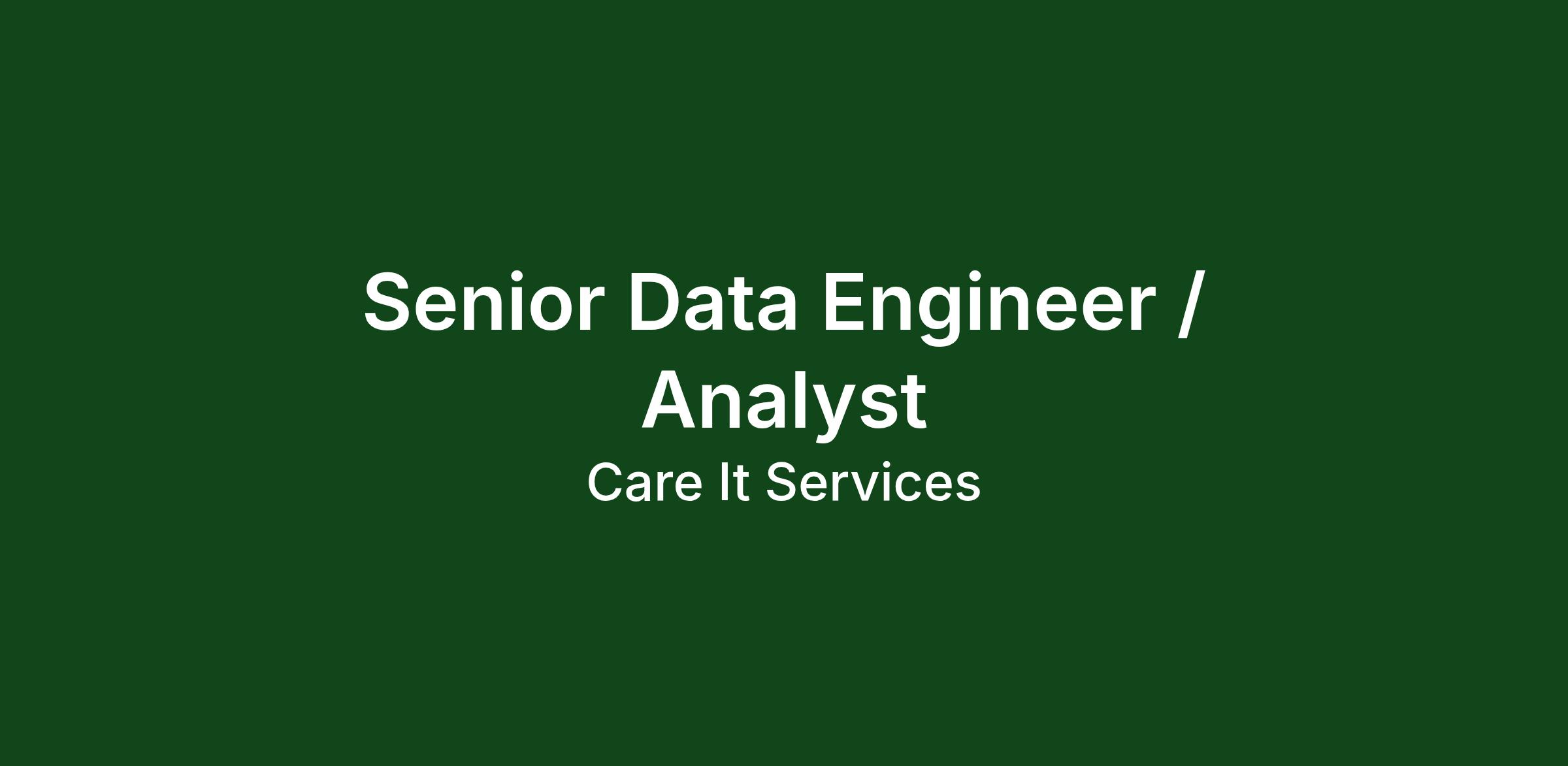 If you are a motivated and skilled Senior Data Engineer / Analyst with a passion, we invite you to apply at sudheer(@)careits (.) com for this exciting opportunity.