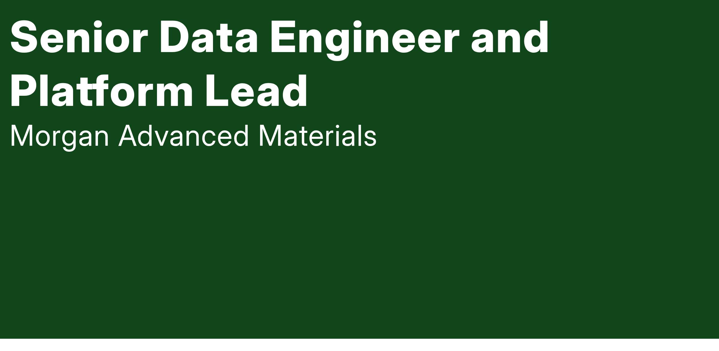 Role: Senior Data Engineer and Platform Lead -Manufacturing
