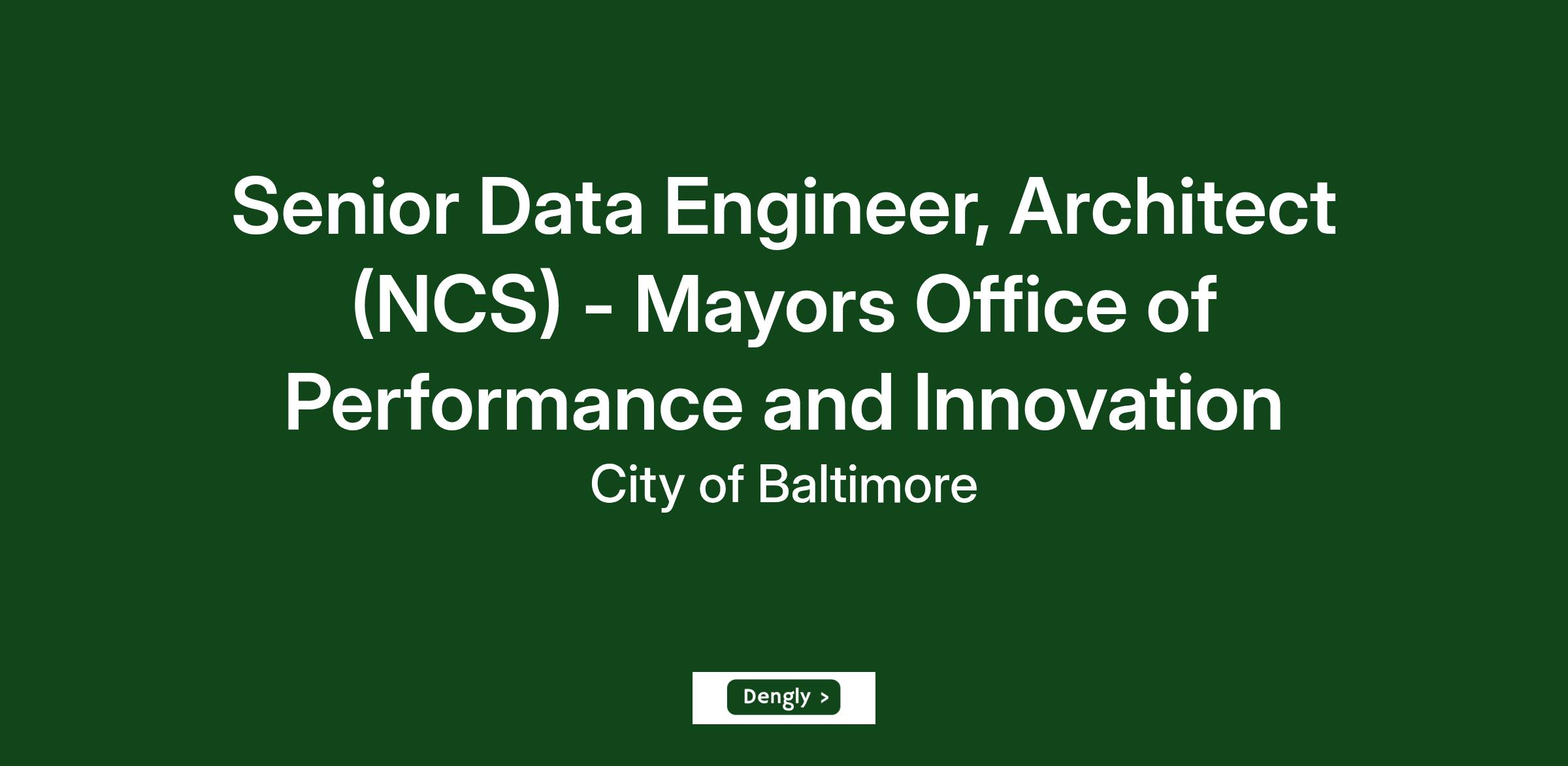 The Mayor's Office of Performance and Innovation (OPI) is seeking a mission-driven Senior Data Engineer and Architect to help design and develop Baltimore's next-generation data infrastructure. As a core contributor on the team, you’ll co-develop a centralized, enterprise-wide data warehouse and the secure, reliable, and scalable data pipelines that feed it.