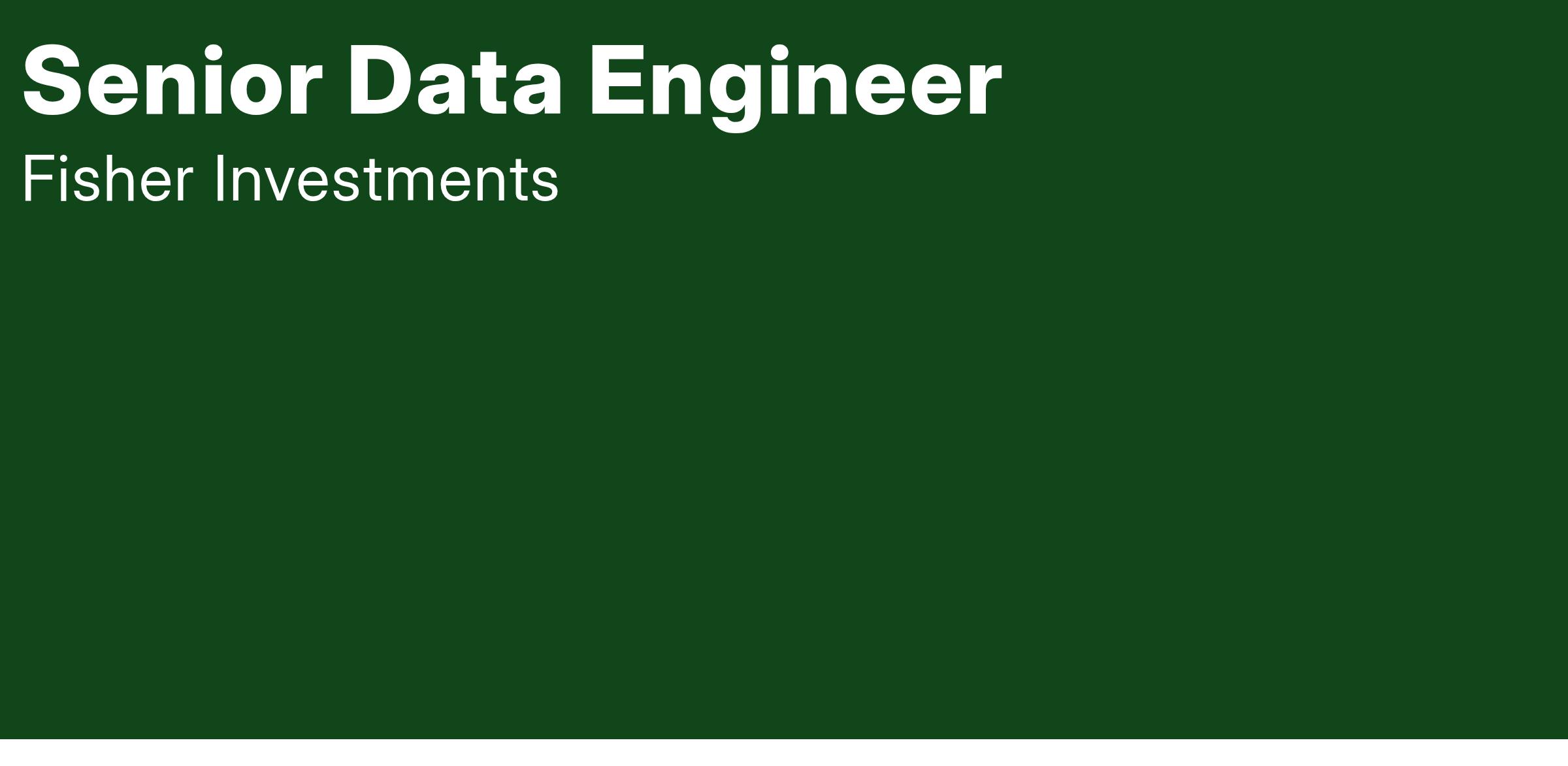 It's an exciting time to be a member of the Fisher Investments Technology Department. We're investing in the future of our firm's technology and are building our team to achieve global growth. We are looking for a Senior Data Engineer to support our Enterprise Data Management team. If you are looking for an opportunity to make a difference as we develop scalable and strategic solutions to support our global growth, we want to hear from you!