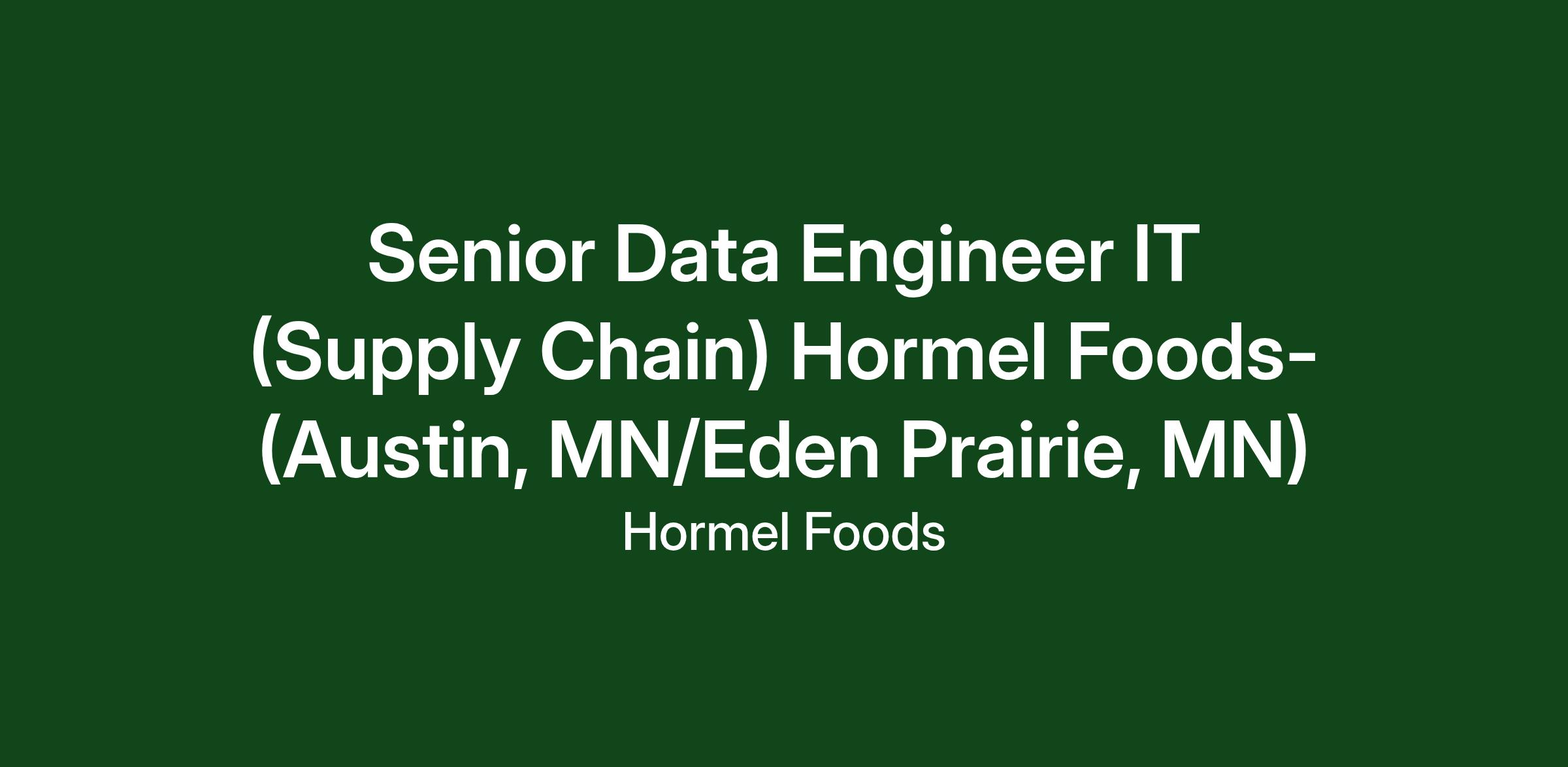 SENIOR DATA ENGINEER IT (SUPPLY CHAIN) HORMEL FOODS - (AUSTIN, MN/EDEN PRAIRIE, MN)