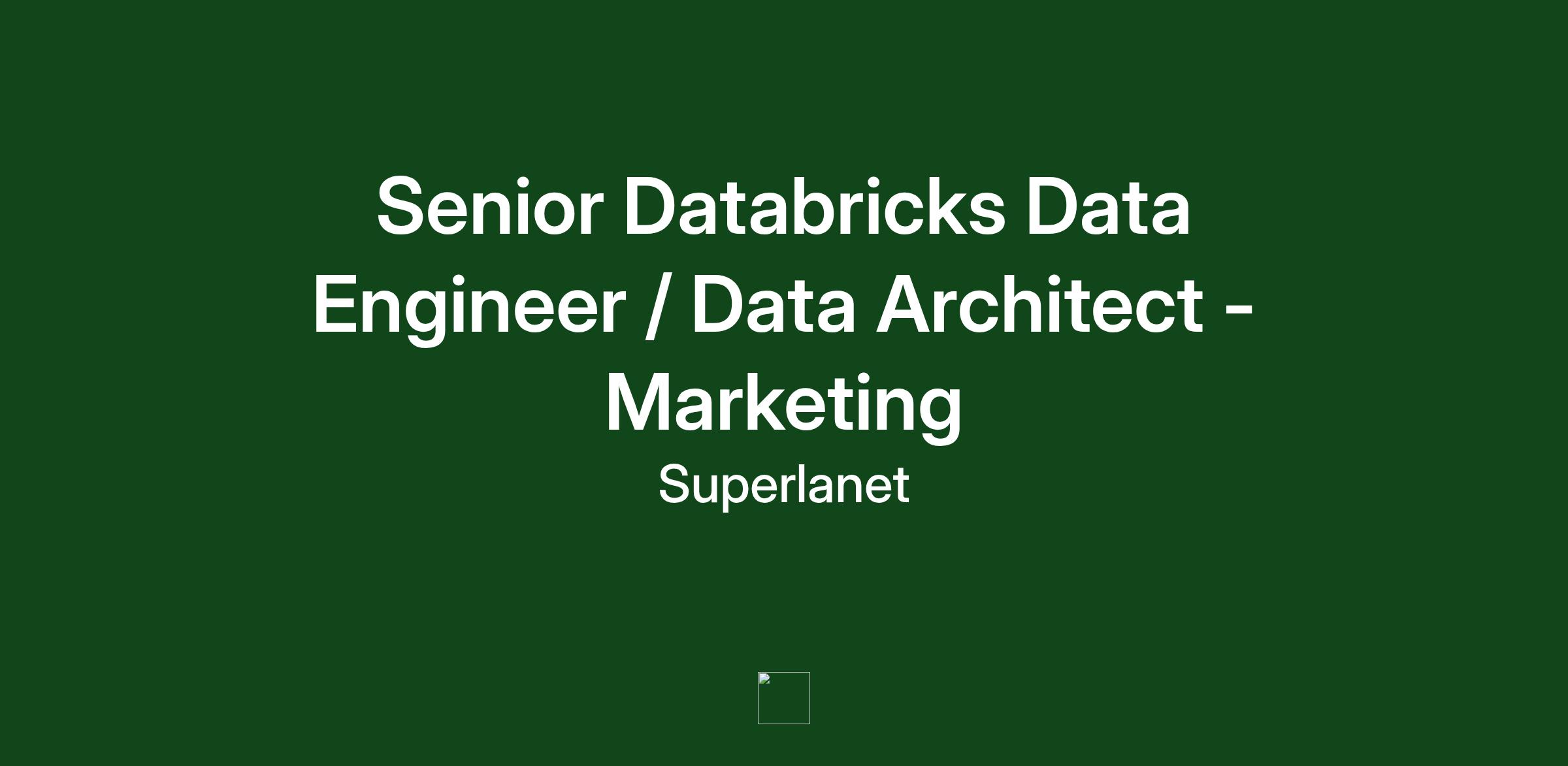 Superlanet is seeking a Senior Data Engineer or Architect for our well\-known Northern California Healthcare client. This is a high\-priority, execution\-critical role supporting the organizationâs transition from Health Catalyst to an enterprise Databricks platform. The Marketing Data Engineer will accelerate platform readiness, ingest marketing data, and enable committed marketing initiatives that are currently lagging due to platform constraints.This is a 8 month contract opportunity with high possibility of extension.