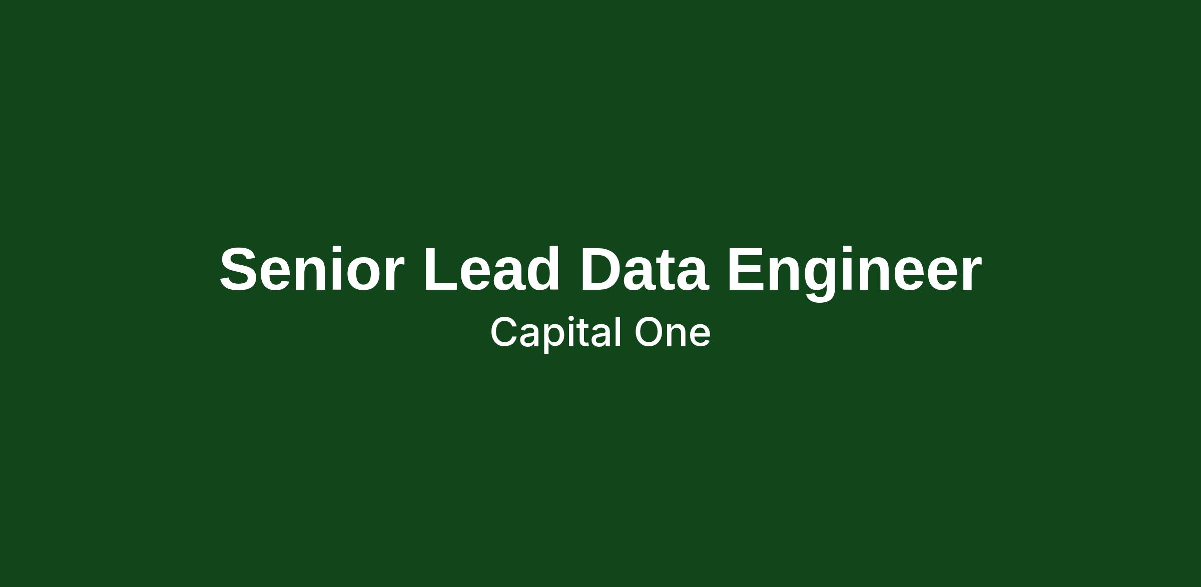 Do you love building and pioneering in the technology space? Do you enjoy solving complex business problems in a fast-paced, collaborative, inclusive, and iterative delivery environment? At Capital One, you'll be part of a big group of makers, breakers, doers and disruptors, who solve real problems and meet real customer needs. We are seeking Data Engineers who are passionate about marrying data with emerging technologies. As a Capital One Senior Lead Data Engineer, you’ll have the opportunity to be on the forefront of driving a major transformation within Capital One.