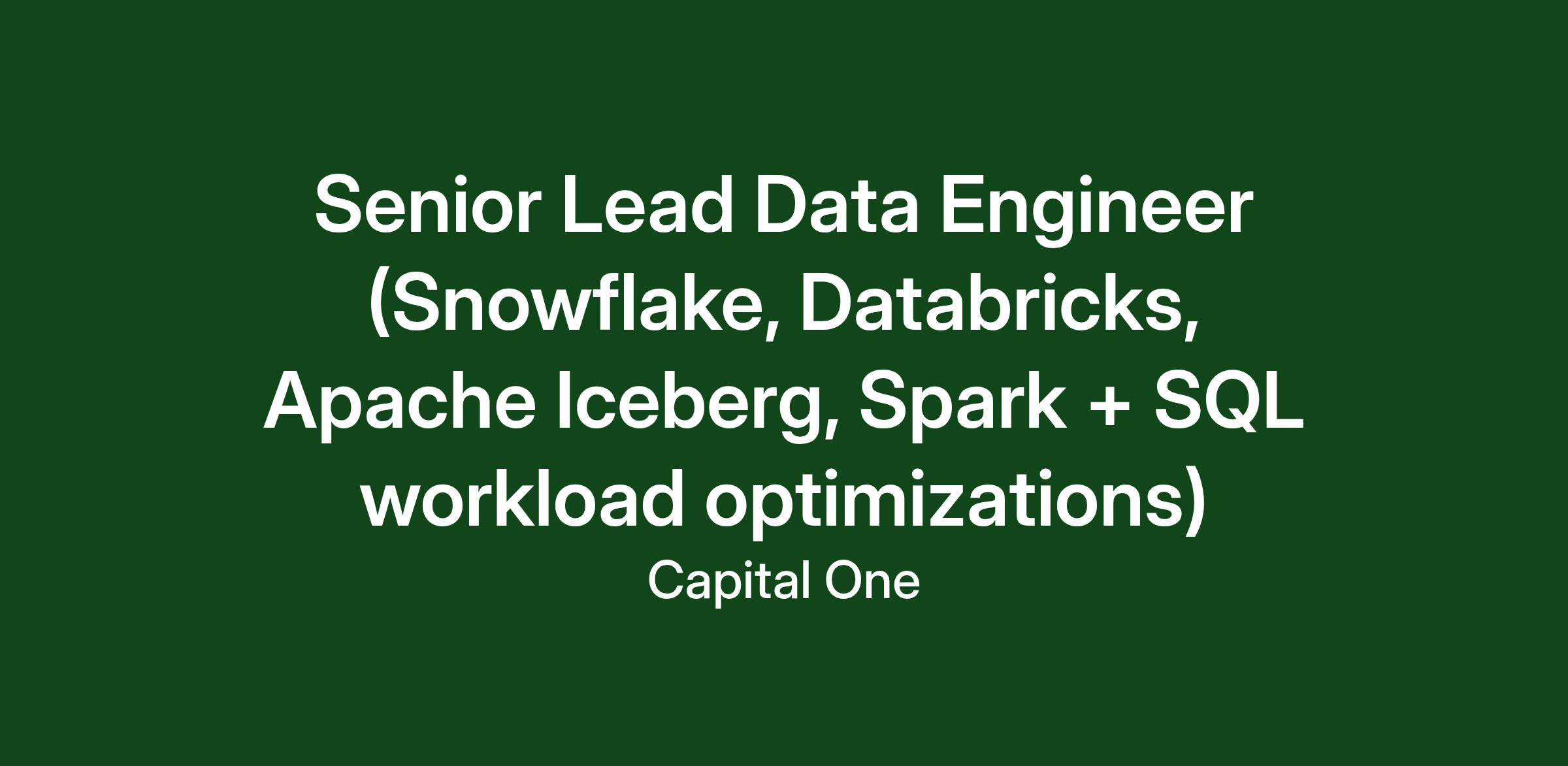 Do you love building and pioneering in the technology space? Do you enjoy solving complex business problems in a fast-paced, collaborative, inclusive, and iterative delivery environment? At Capital One, you'll be part of a big group of makers, breakers, doers and disruptors, who solve real problems and meet real customer needs. We are seeking Data Engineers who are passionate about marrying data with emerging technologies. As a Capital One Senior Lead Data Engineer, you’ll have the opportunity to be on the forefront of driving a major transformation within Capital One.
