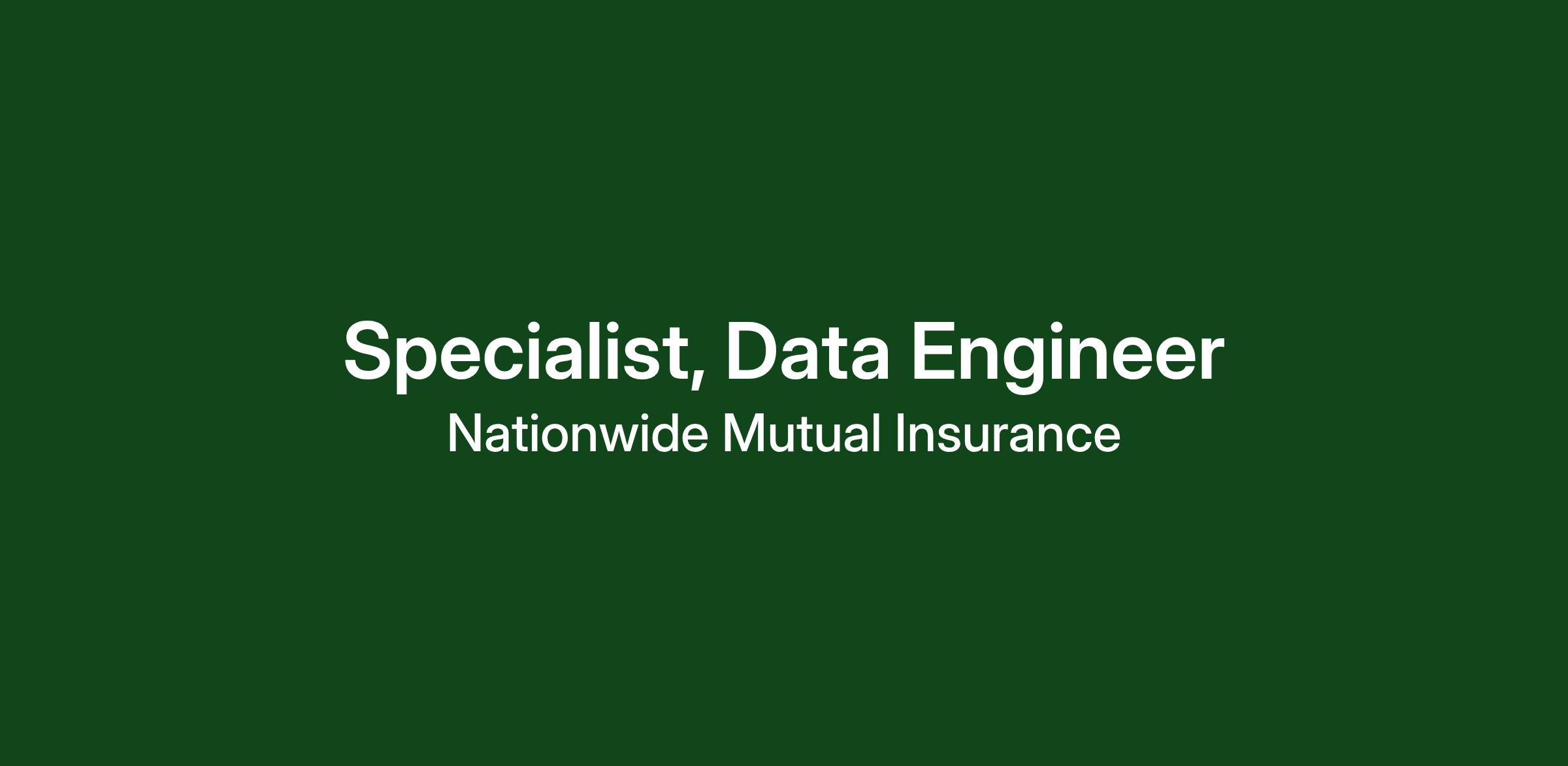 Nationwide pays on a geographic-specific salary structure and placement within the actual starting salary range for this position will be determined by a number of factors including the skills, education, training, credentials and experience of the candidate; the scope, complexity and location of the role as well as the cost of labor in the market; and other conditions of employment. If a Sales job, Sales Incentives, based on performance goals are possible in addition to this range. Note on Compensation for Part-Time Roles: Please be aware that the salary ranges listed below reflect full-time compensation. Actual compensation may be prorated based on the number of hours worked relative to a full-time schedule.The national salary range for Specialist, Data Engineer : $95,500.00-$177,500.00The expected starting salary range for Specialist, Data Engineer : $95,500.00 - $143,500.00