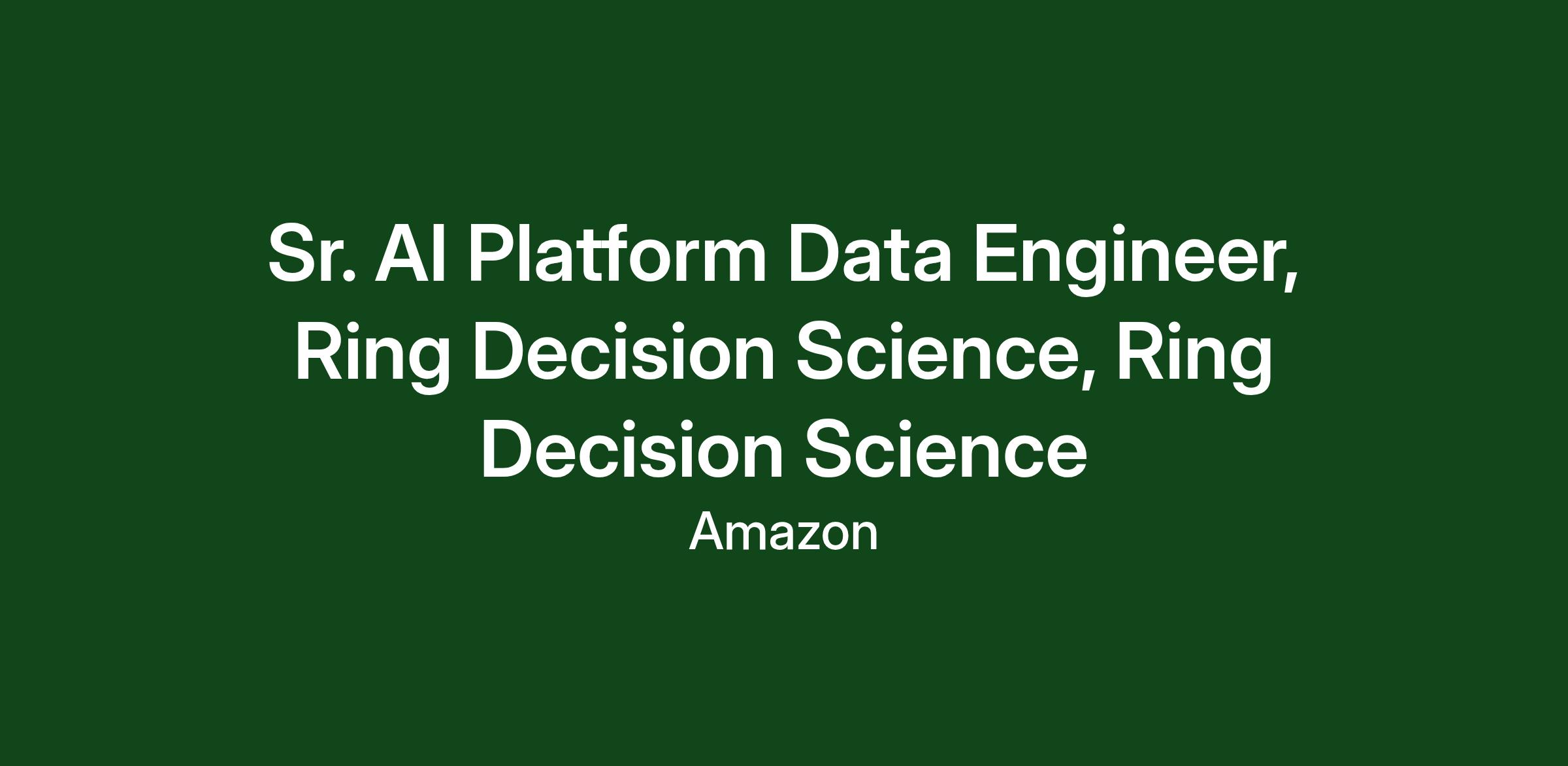 The Analytics & Science team for Decision Sciences is at the forefront of Ring's transformation into an AI-powered organization. We address cross-organizational data models, develop governance frameworks, provide direct Business Intelligence (BI) support across multiple teams, and build customer-facing and internal AI tools that fundamentally improve how effectively and quickly the organization makes decisions.