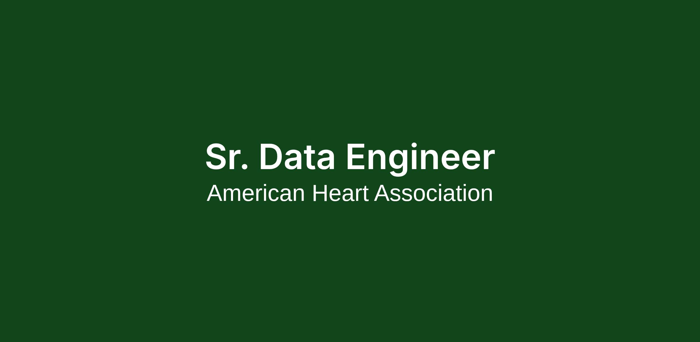 The American Heart Association has an excellent opportunity for a Sr. Data Engineer based at our National Center in Dallas, TX